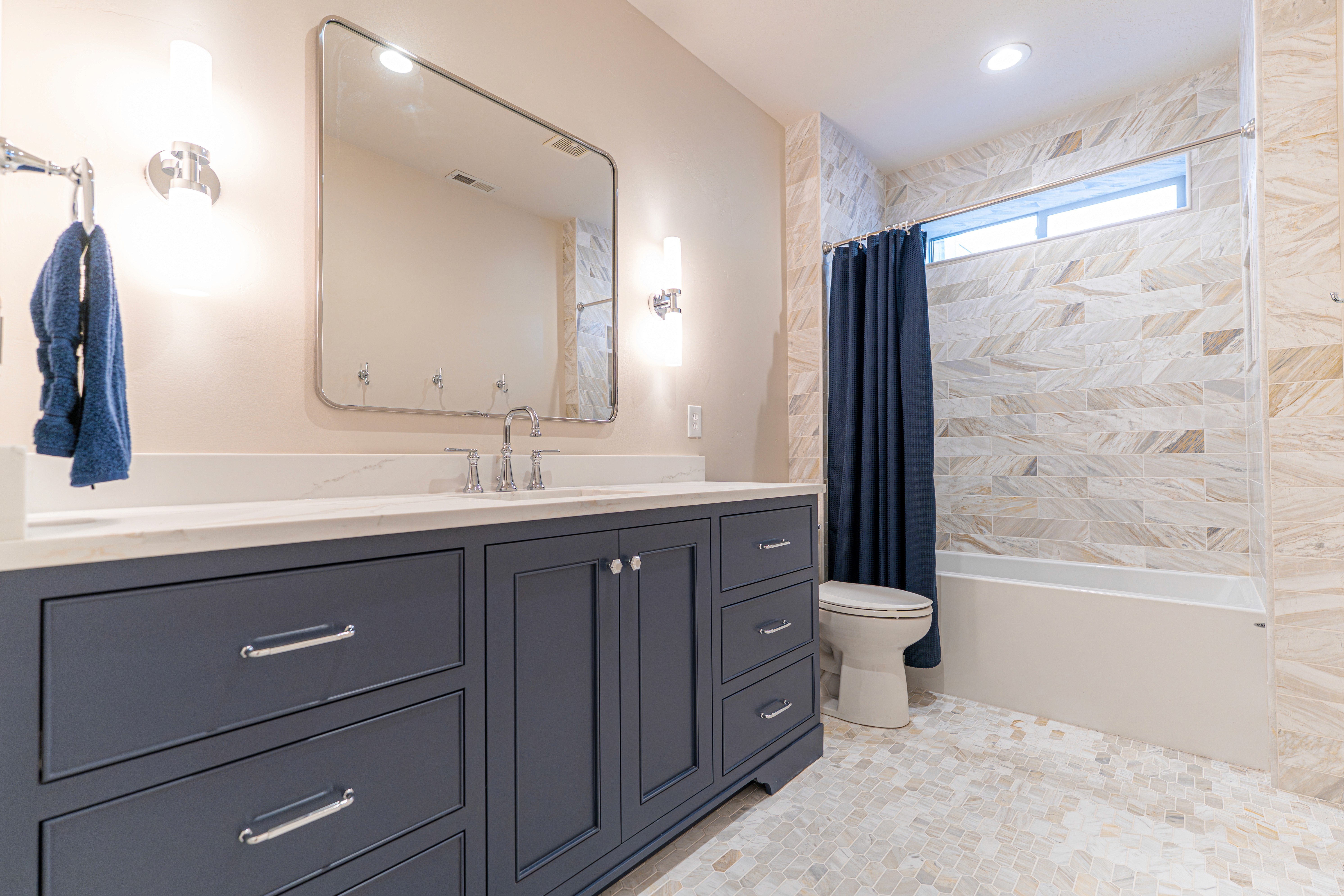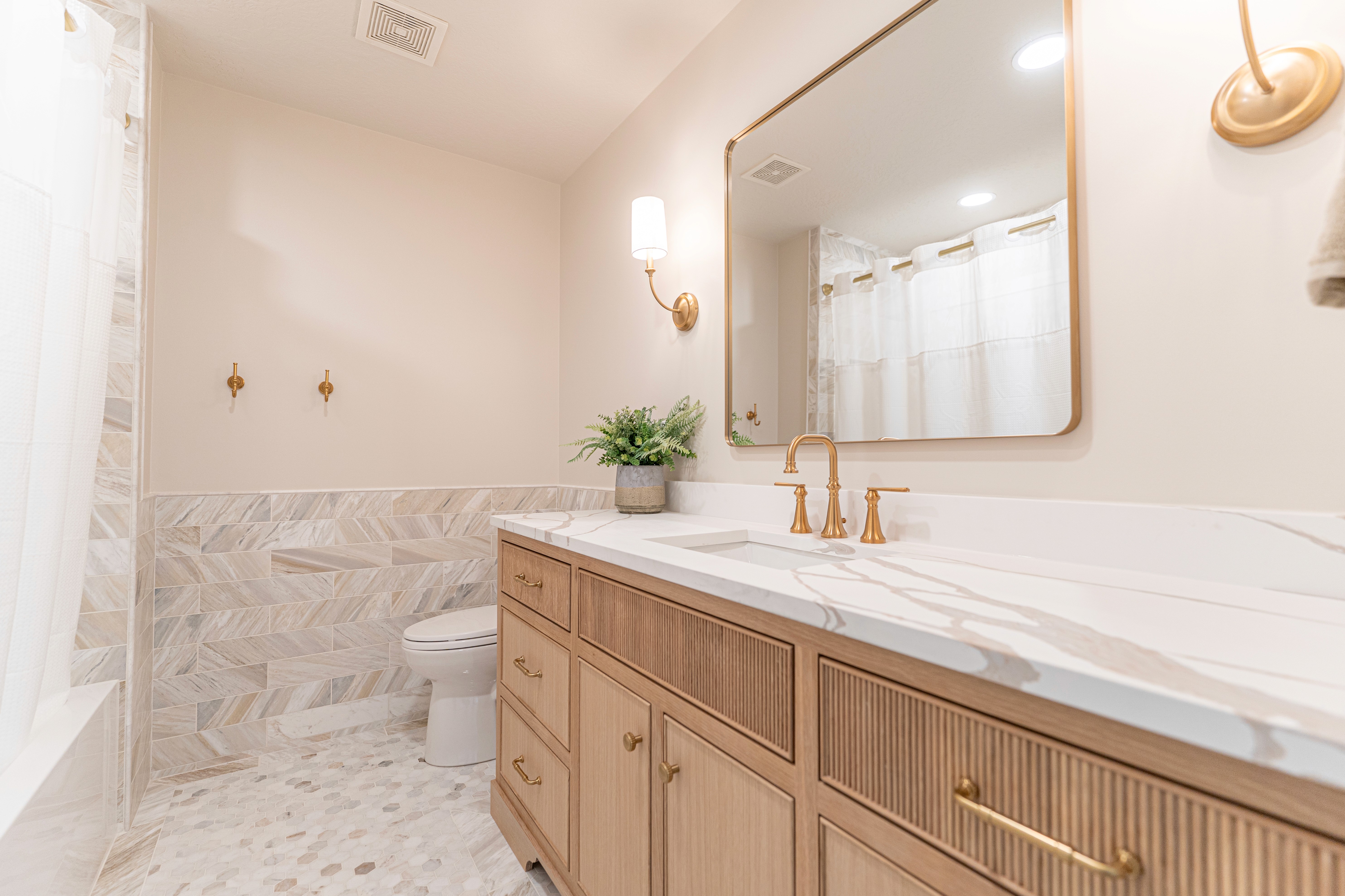 Three additional bathrooms throughout the home were also remodeled to match the refined aesthetic, each featuring updated cabinetry, quality tile work, and modern fixtures while maintaining a timeless style.